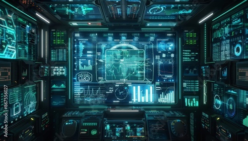 Futuristic Control Room with Holographic Interface and Advanced Data Visualization