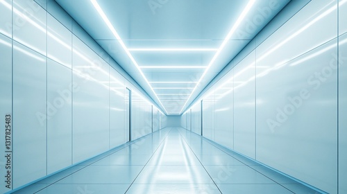 Futuristic Corridor: A Sterile and Clean Modernistic Interior Design with Bright Lighting