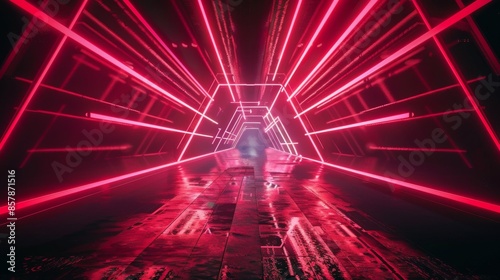 Futuristic cyber laser line motion banner for casino. Dynamic techno perspective beam 3D graphic design. Party power and energy boost led tunnel background.