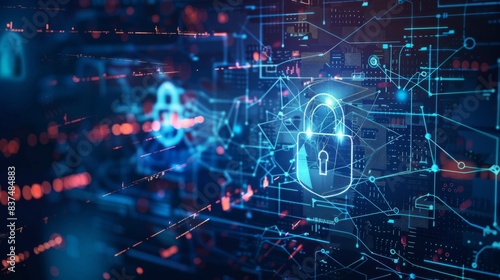 Futuristic Cyber Security Concept in Modern Business Environment Featuring Advanced Digital Protection and Technology Designs. Emphasizing the Importance of Online Safety and Secure Data Managment in