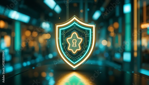 Futuristic Cyber Security Shield: Digital Data Protection & Online Privacy