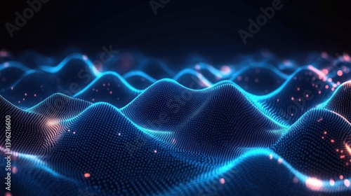 Futuristic Cyberpunk Abstract Digital Landscape with Neon Blue Lines and Wave Patterns in Dark Background