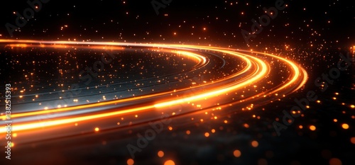 Futuristic Dark Metal Glowing Cyberpunk Studio with Amber Lighting and Abstract Curved Lines