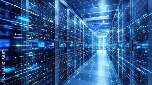 Futuristic Data Center with Bright Light and Digital Connections