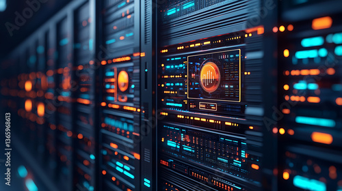 Futuristic Data Center with Digital Displays and Illuminated Panels