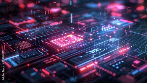 Futuristic data center with vibrant lights and advanced technology