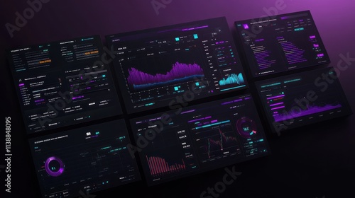Futuristic Data Visualization: Cyberpunk Style Dashboard Displaying Complex Financial Information