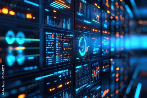 Futuristic Data Visualization Display with Bright Blue and Orange Lights for Modern Technology