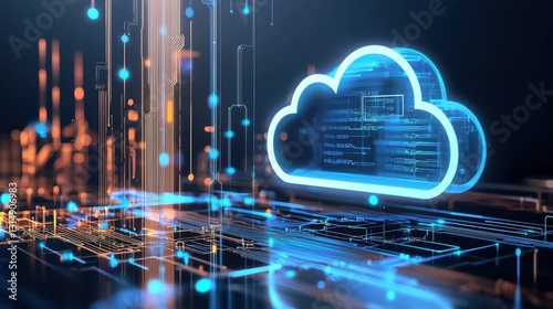 Futuristic depicting cloud computing data storage and information technology infrastructure Showcases a glowing dynamic 3D render with abstract