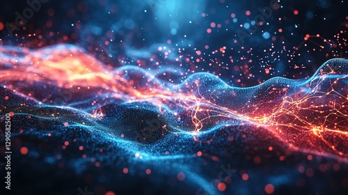 Futuristic design with abstract brainwaves, digital neurons, and cosmic energy pulses