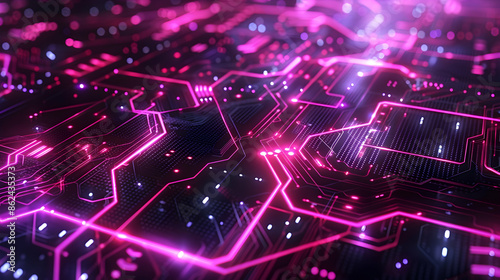 Futuristic digital abstract circuit board technology texture background - Glowing neon lights and futuristic grids