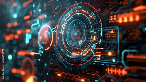 Futuristic digital background with futuristic technology interfaces and HUD elements, ideal for sound and graphic presentations and science visuals