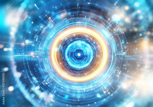 Futuristic digital background with glowing circular patterns and vibrant colors