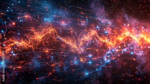 Futuristic Digital Background with Glowing Neon Lights and Abstract Technology Elements