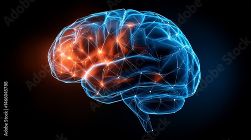 Futuristic digital brain illustration with glowing connections and nodes