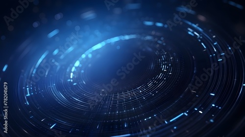 Futuristic Digital Circles of Blue Glowing Energy in Cyberspace Backdrop for Data Visualization and Network Information Decay Concept