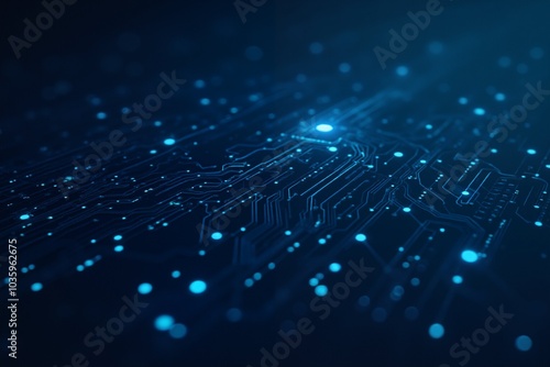 Futuristic digital circuit board with glowing blue connections.