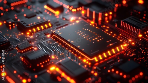 Futuristic Digital Circuit Board with Glowing Technological Patterns