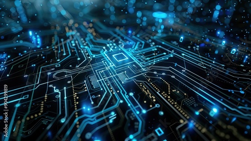 Futuristic Digital Circuit with High-Tech Network Diagram Design