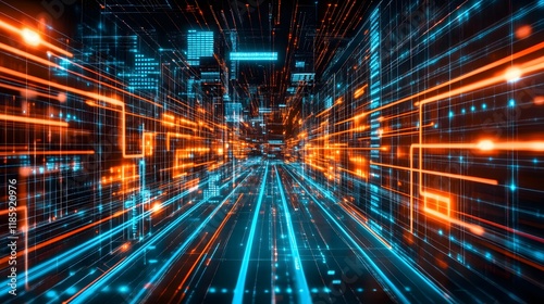 Futuristic Digital Cityscape Data Highway Network Technology