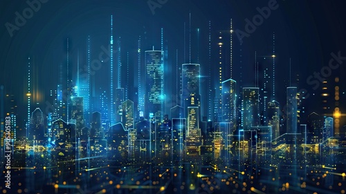 Futuristic Digital Cityscape with Illuminated Skyscrapers. AI generated illustration