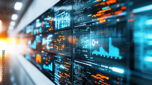 Futuristic Digital Data Analytics Dashboard Screen with Graphs and Charts