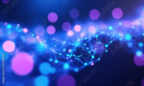 Futuristic digital data grid in vibrant neon blue and purple tones, creating an intricate and advanced technological aesthetic
