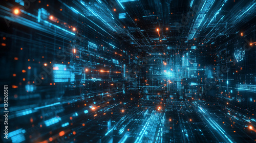 Futuristic Digital Data Stream Abstract Technology Background Cyberspace Tunnel Binary Code Glowing