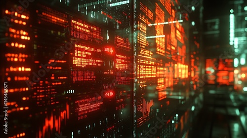 Futuristic Digital Data Stream Wall Displays Red Code