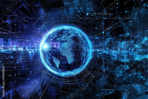 Futuristic Digital Globe with Data Visualization and Technology Elements