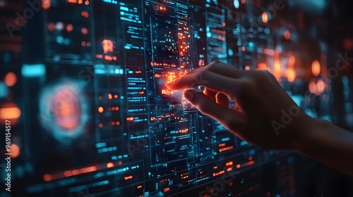 Futuristic digital health records system in use, patient data displayed with vibrant graphics, modern technology transforming medical care.