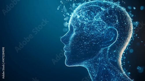 Futuristic digital human head with illuminated neural network representing cognition picture