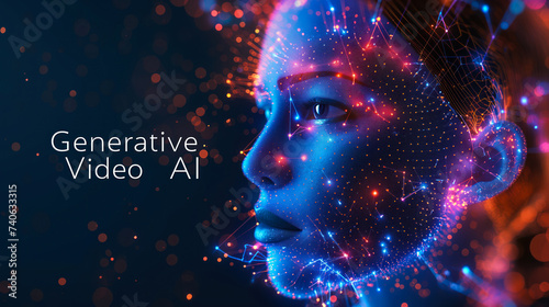 Futuristic Digital Human Profile Displaying Neural Network Brain Activity Symbolizing Advanced Generative AI Video Technology in a Networked World