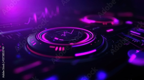 Futuristic digital interface showcasing vibrant purple and pink sound wave patterns