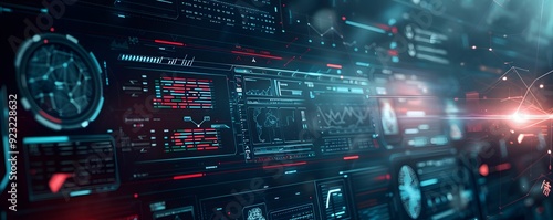 Futuristic Digital Interface with Data Visualization and Network Connections