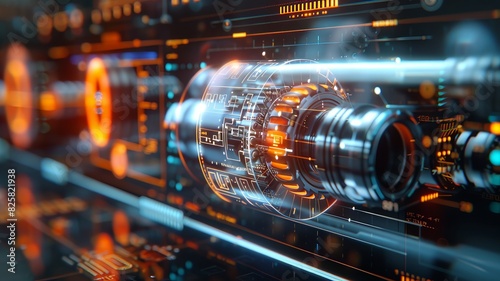 Futuristic digital interface with glowing elements, depicting advanced technology concepts and cyber innovation in a modern design.