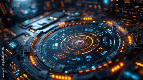 Futuristic Digital Interface with Neon Lights and High-Tech Elements for Sci-Fi and Technology-Themed Projects