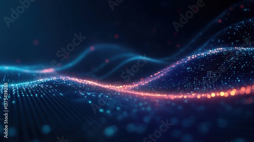 Futuristic Digital Landscape with Glowing Grid Lines in Cyberpunk Style Ambient Lighting