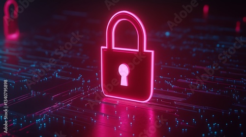 Futuristic Digital Lock Symbolizing Cybersecurity Protection in Neon Colors Against a Technology Background