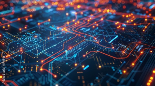 Futuristic digital map glowing pathways and nodes illustrating data exchange in realistic image