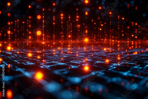 Futuristic Digital Matrix with Glowing Orange and Blue Lights - Ideal for Technology Design