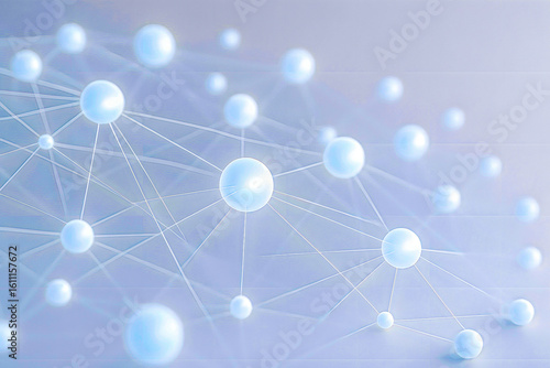 Futuristic digital network of floating nodes and connections, soft blue tones creating a calming representation of data flow, neural systems, and artificial intelligence communication architecture.