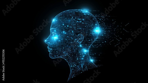 Futuristic digital profile of human head with glowing circuitry in blue light
