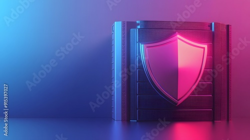 Futuristic digital security concept with shield icon, illuminating in blue and pink light, symbolizing cyber protection and data safety.