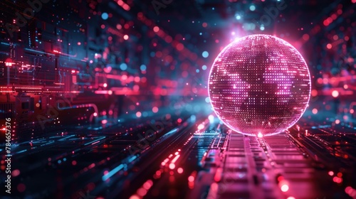 Futuristic Digital Sphere on Circuit Board Background