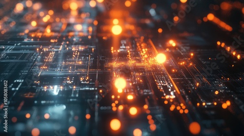 Futuristic digital tech background with glowing circuits and abstract shapes, symbolizing innovation and modernity