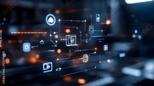 Futuristic Digital Technology Interface with Infographic Data Visualization