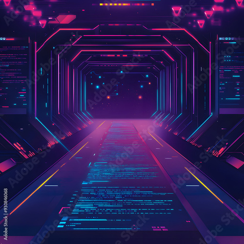 Futuristic Digital Tunnel with Neon Lights Representing Online Learning Environment for Virtual Classrooms and E-Learning
