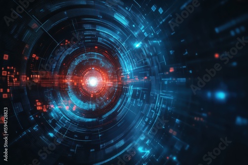 Futuristic digital vortex glowing with blue and red light abstract technology