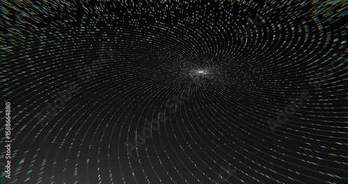 Futuristic Digital Vortex: Swirling Light Lines and Data Points on Dark Background